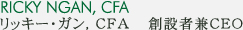 テンガードの創設者兼CEOとして、リッキーは 顧客およびパートナーにとって有効且つ非常に創造的な投資プラットホームとして知られる金融業界の主要プレーヤーとしての評判を構築するために会社を導きます。香政府機関で資金46億香港ドルを管理し、良好なリターンを得た経験から、幾年もの間上場金融機関の業務執行取締役であったこと、これらの経験からもお客さまの資産形成の理想をお約束致します。